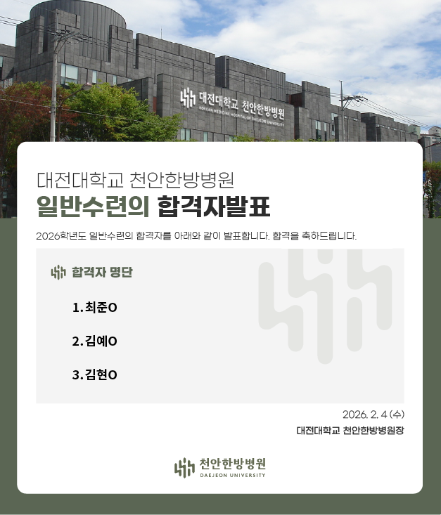 2026학년도 일반수련의 합격자 발표